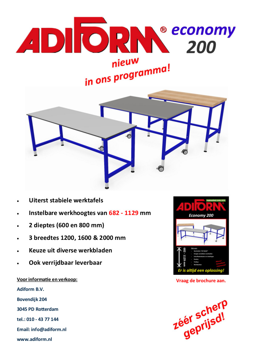 Hier vindt u binnenkort meer informatie over de uiterst stabiele 'Economy 200' werktafels.